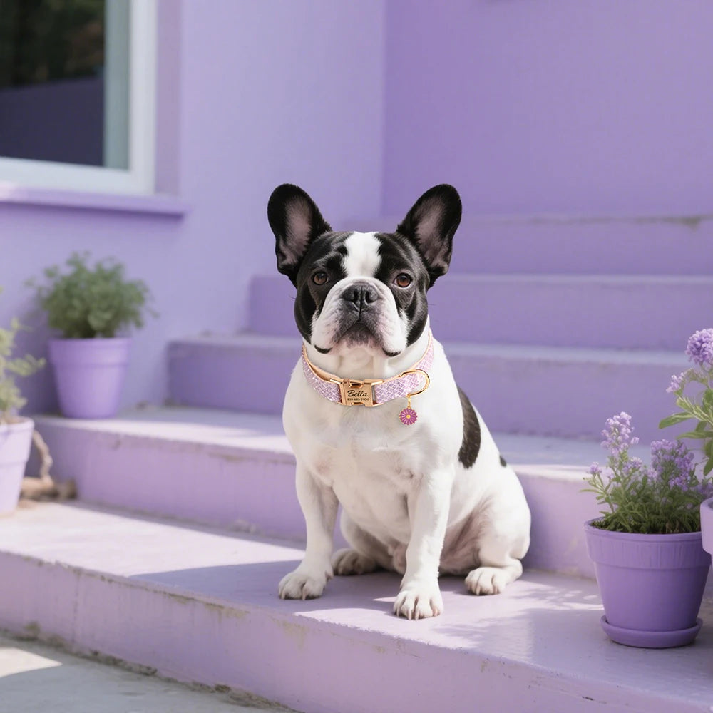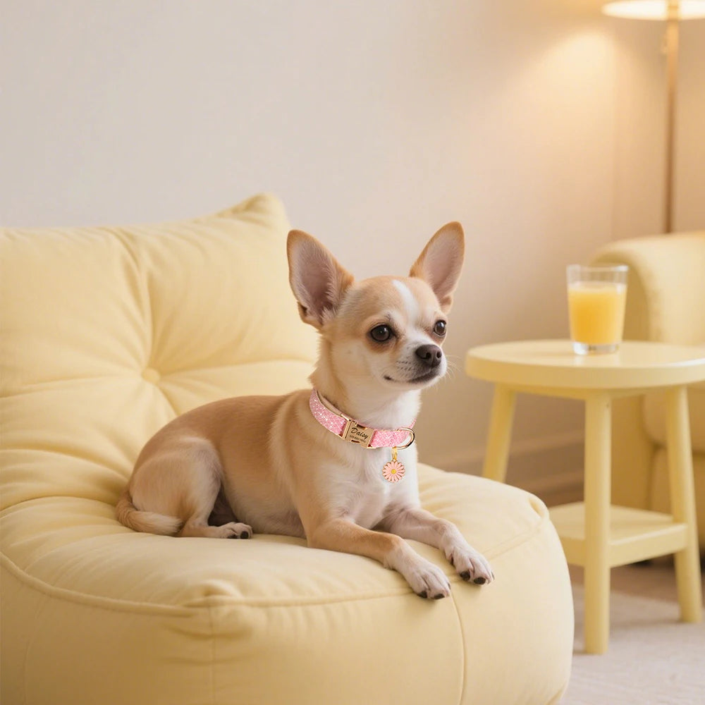 Personalized Bling Dog Collar – Engraved Nylon Puppy ID Collar with Flower Tag